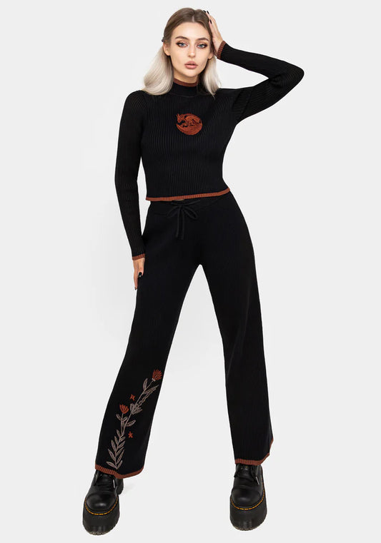 Joggers de punto con bordado floral naranja y marrón en la pierna
