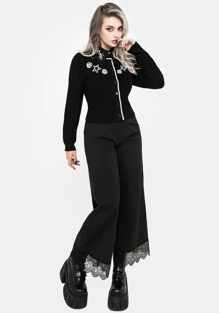 Cárdigan negro de punto con pentagrama y pentáculo bordado