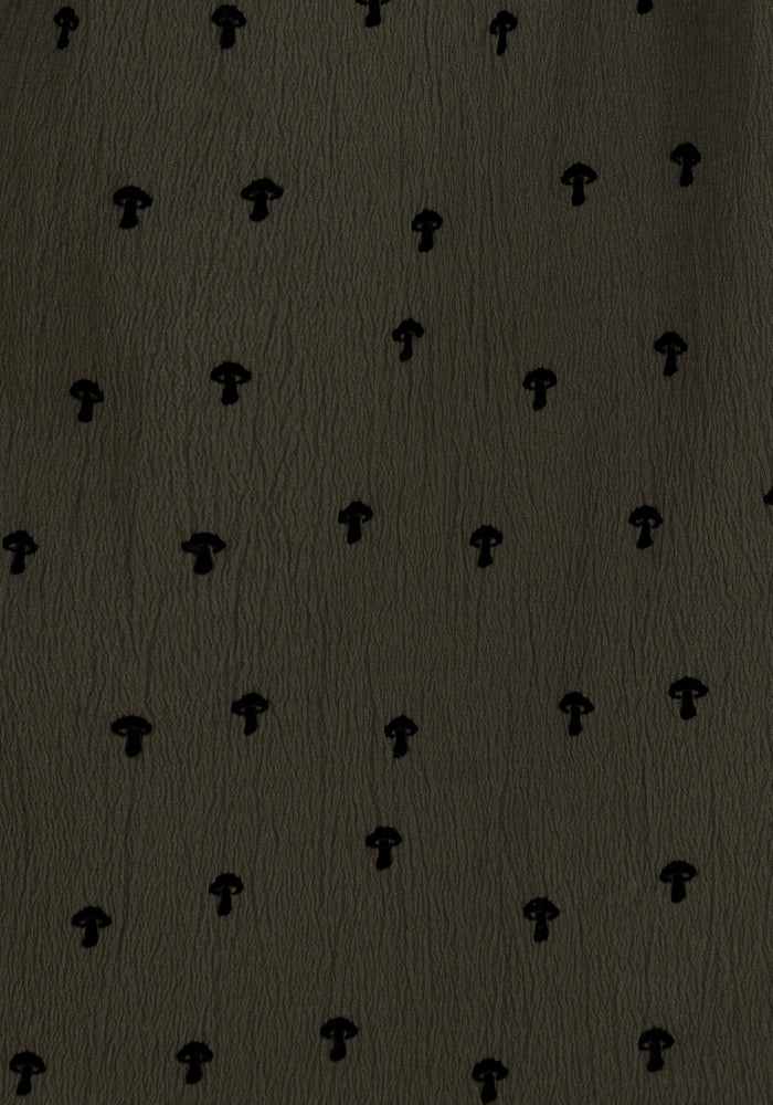 Minivestido verde con diseño de setas.